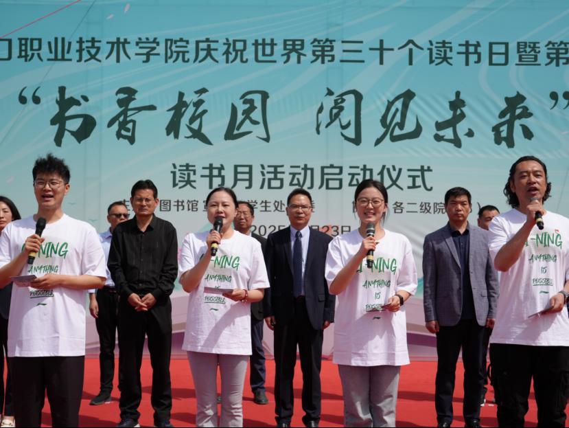 教师代表齐研、学生代表李盼盼分别在发言中畅谈个人阅读体验与思考,分享阅读感悟与收获。图书馆馆员代表向全校师生发出倡议,激励大家在经典中筑牢文化根基,用专业书籍锤炼本领,以实践回应时代叩问,让阅读成为担当的底气。