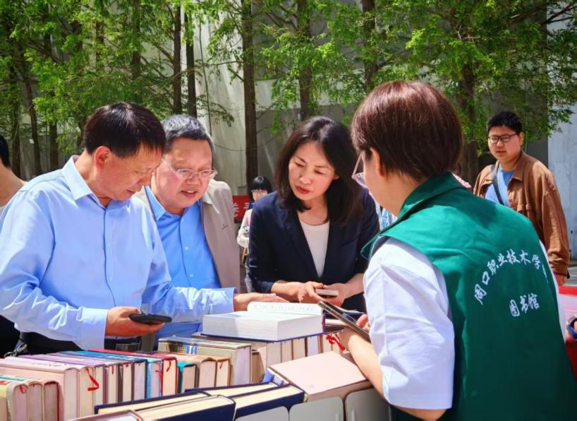 随后,校长李清臣一行来到优秀书籍展台,认真阅览图书馆精选展出的中外畅销书籍,并勉励学生们要爱读书、读好书、善读书,在阅读中汲取智慧,在交流中碰撞思想,让自己真正成为腹有诗书、身怀一技的高素质技能型人才。
