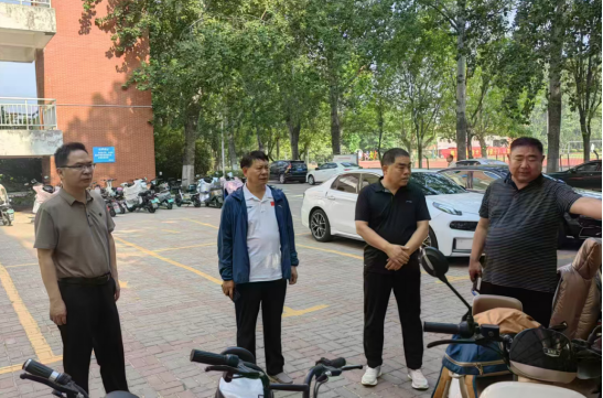 为进一步加强校园安全管理,预防火灾事故发生,确保师生生命财产安全,5月21日上午,校长李清臣、副校长王隼带领相关职能部门负责人对校园电动自行车安全隐患进行专项排查工作。