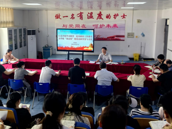 为扎实推进深入贯彻中央八项规定精神学习教育,持续深化作风建设,筑牢党员干部教师思想根基,6月17日下午,校长李清臣到文昌校区讲授专题党课。相关职能部门负责人及医学院、护理学院党员教师参加。