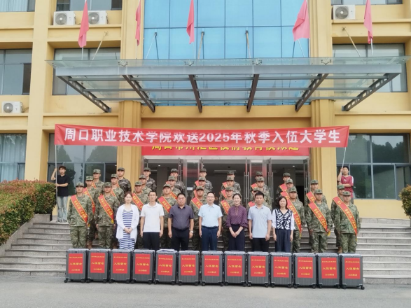 9月15日,在新兵即将奔赴军营之际,副校长王隼带领学校武装部、学生处负责人及相关工作人员前往周口市军分区民兵训练基地,为beat365官网2025年秋季入伍的大学生新兵送去母校的关怀与祝福,并举行欢送仪式。