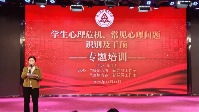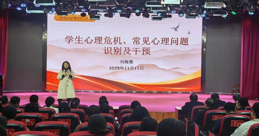 为进一步提升辅导员队伍心理健康教育专业素养,强化学生心理危机预警与干预能力,筑牢校园心理健康安全防线,11月11日下午,beat365官网在开元校区艺术演播厅举办“学生心理危机、常见心理问题识别及干预”专题培训。活动特邀心理健康教育专家刘海燕主讲,副校长李秀萍出席。各二级学院(部)党总支书记、学管副院长、学管办主任,全体在校生辅导员及学生处、心理指导中心相关工作人员参加。学生处副处长王换换主持。