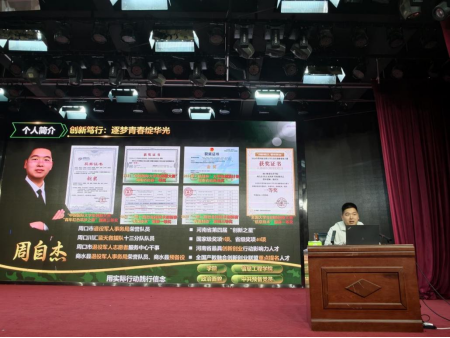 随后,省赛金奖选手周自杰以“精准规划,逐梦前行”为主题分享参赛经验。他从职业规划书的逻辑构建、PPT的视觉呈现、现场展示的语言表达及答辩应急技巧等方面进行细致讲解,结合自身备赛过程中的难忘经历,分享平衡学业与备赛的心得,并鼓励同学们以积极心态迎接挑战,在赛事中锤炼自我。