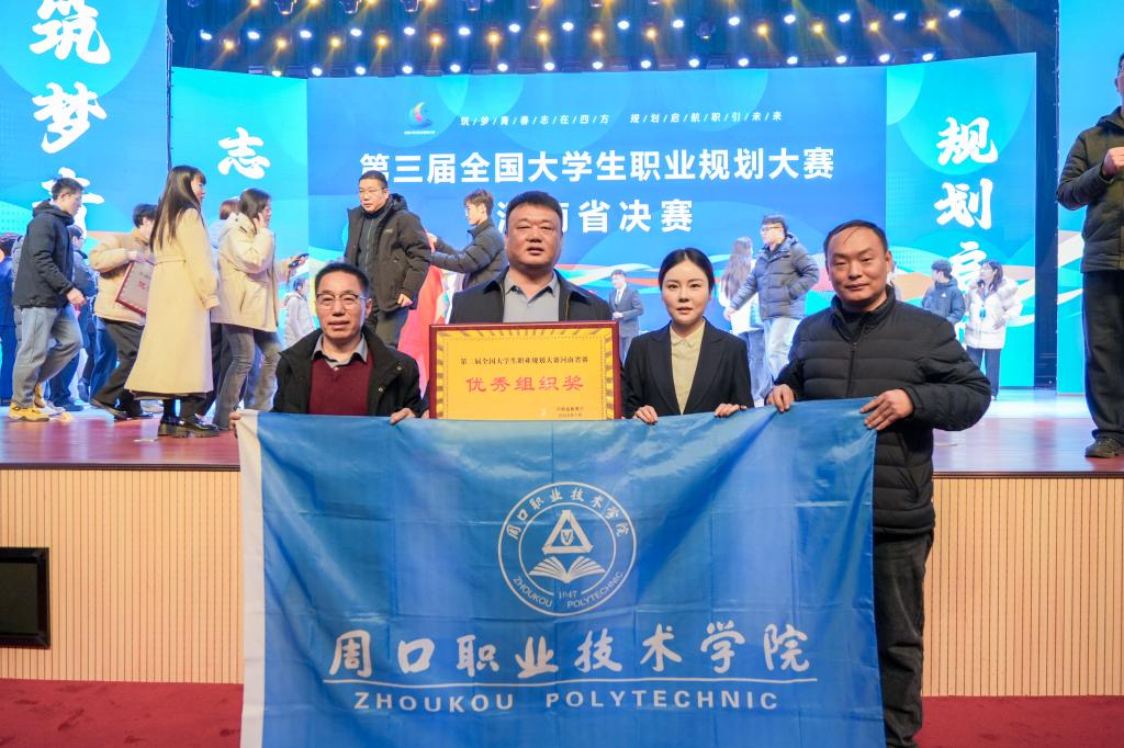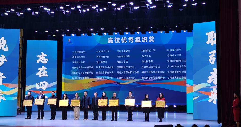 1月28日上午,第三届全国大学生职业规划大赛河南省赛颁奖仪式在洛阳师范学院音乐大厅举行。beat365官网师生再创佳绩,共斩获金奖1项、银奖1项、铜奖3项,学校被授予“优秀组织奖”。