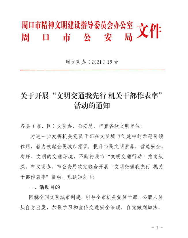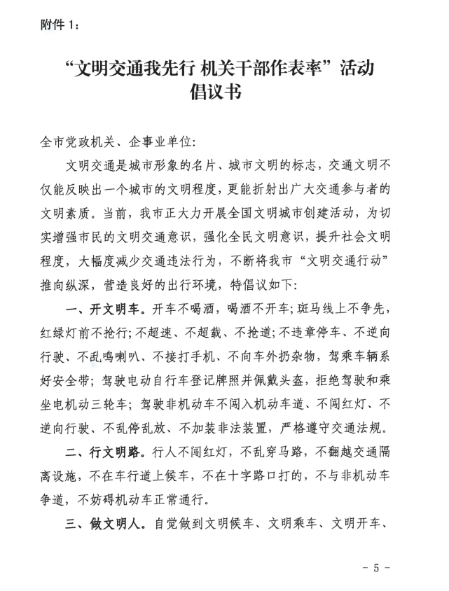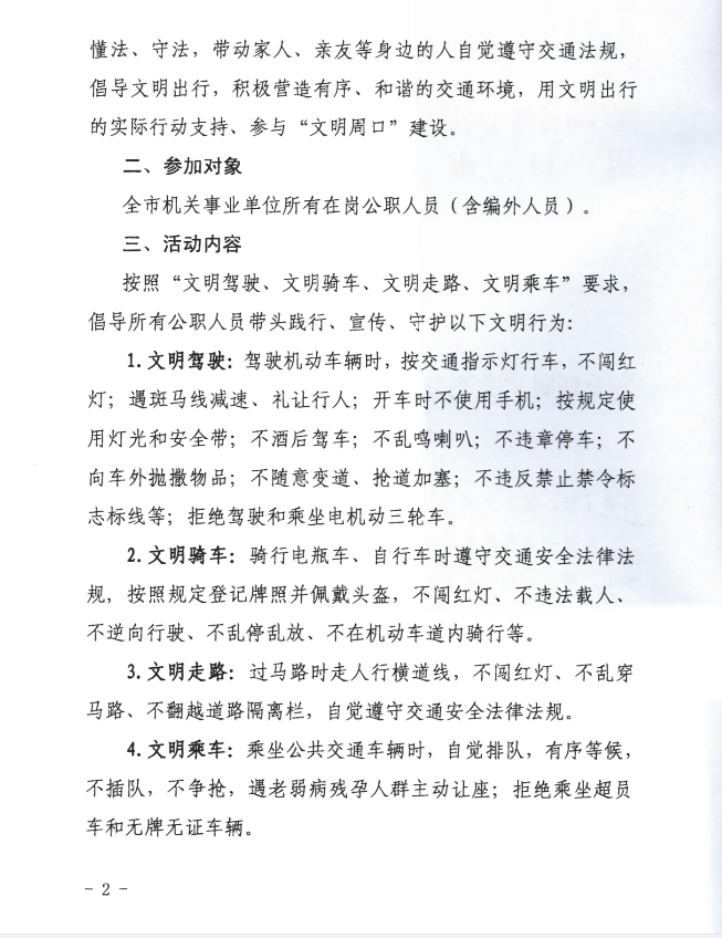 关于开展“文明交通我先行 机关干部做表率”活动的通知