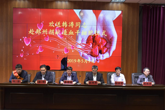 “造血干细胞移植是现代生命科学的重大突破,是挽救白血病患者生命的公益事业,让成千上万名血液病患者重新燃起了生命的希望。”欢送仪式上,周口市政府副市长、市红十字会会长秦胜军代表市政府、市红十字会对韩涛同志的捐献行为表示了诚挚感谢和崇高敬意。