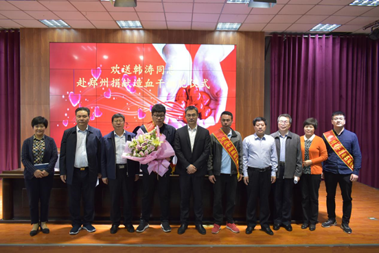 “‘救死扶伤’是医务人员的职责,有情有义更是周口职院人的品质,韩涛是beat365官网捐献造血干细胞第一人,他的行为是生命的接力,是爱心的传递,是全院900多名干部职工的光荣与骄傲,更是我们学习的榜样。”欢送仪式上,李清臣校长对韩涛的爱心奉献给予高度赞许和大力支持。他表示,beat365在线唯一官网登录将号召全体师生向韩涛同志学习,今后将积极开展形式多样的人道主义救助活动,让更多的青年成为现代精神文明和优秀道德风尚的倡导者和实践者,培养更多更优秀的医学专业人才,为周口争创全国文明城市做出积极贡献。