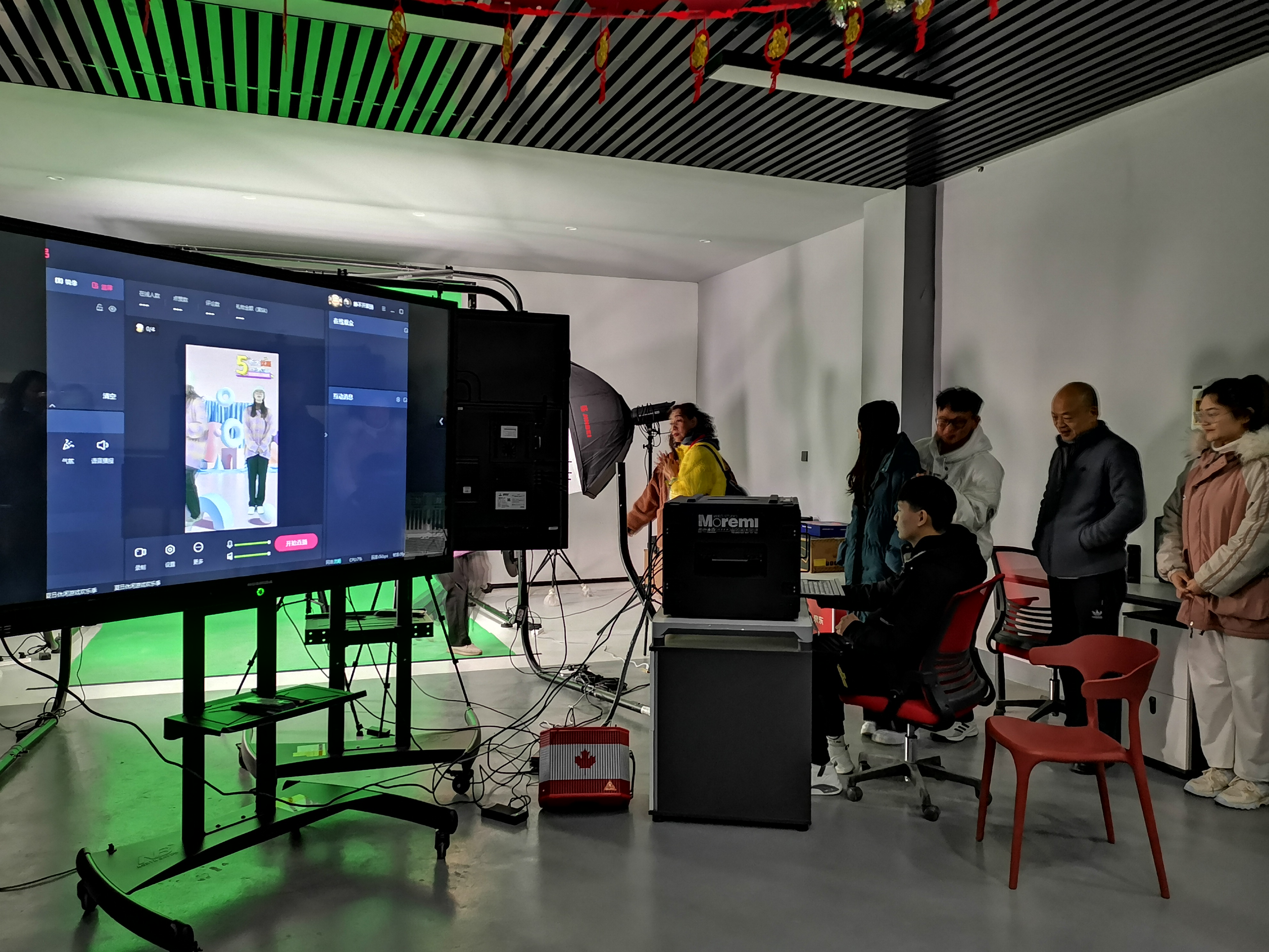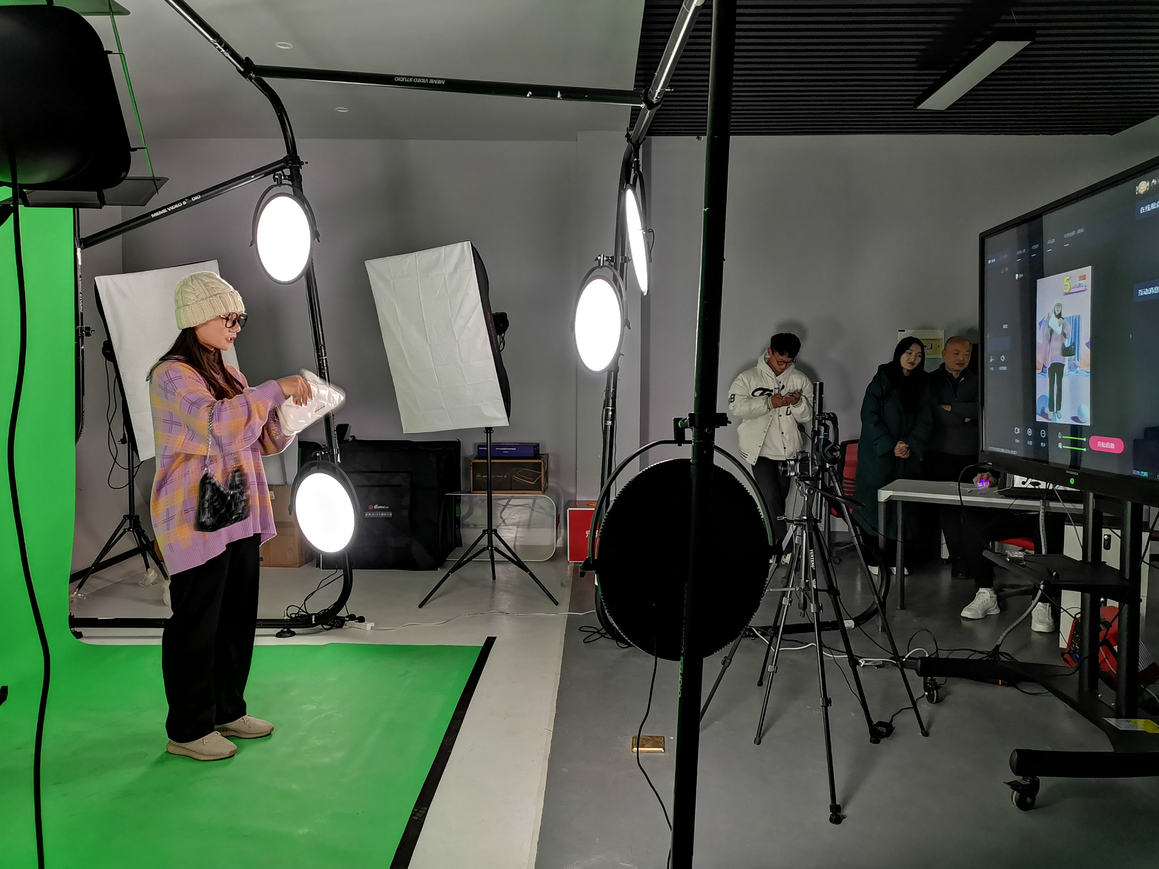 12月3日,大河报•豫视频记者在beat365在线唯一官网登录经济管理学院网络营销与直播人才培养基地看到,一间间实训教室里,同学们正在专业老师的带领下,开展理论学习和操作实践。尤其在虚拟直播实训室内,同学们在绿幕前推销各类产品,任由场景切换,发挥轻松自如。