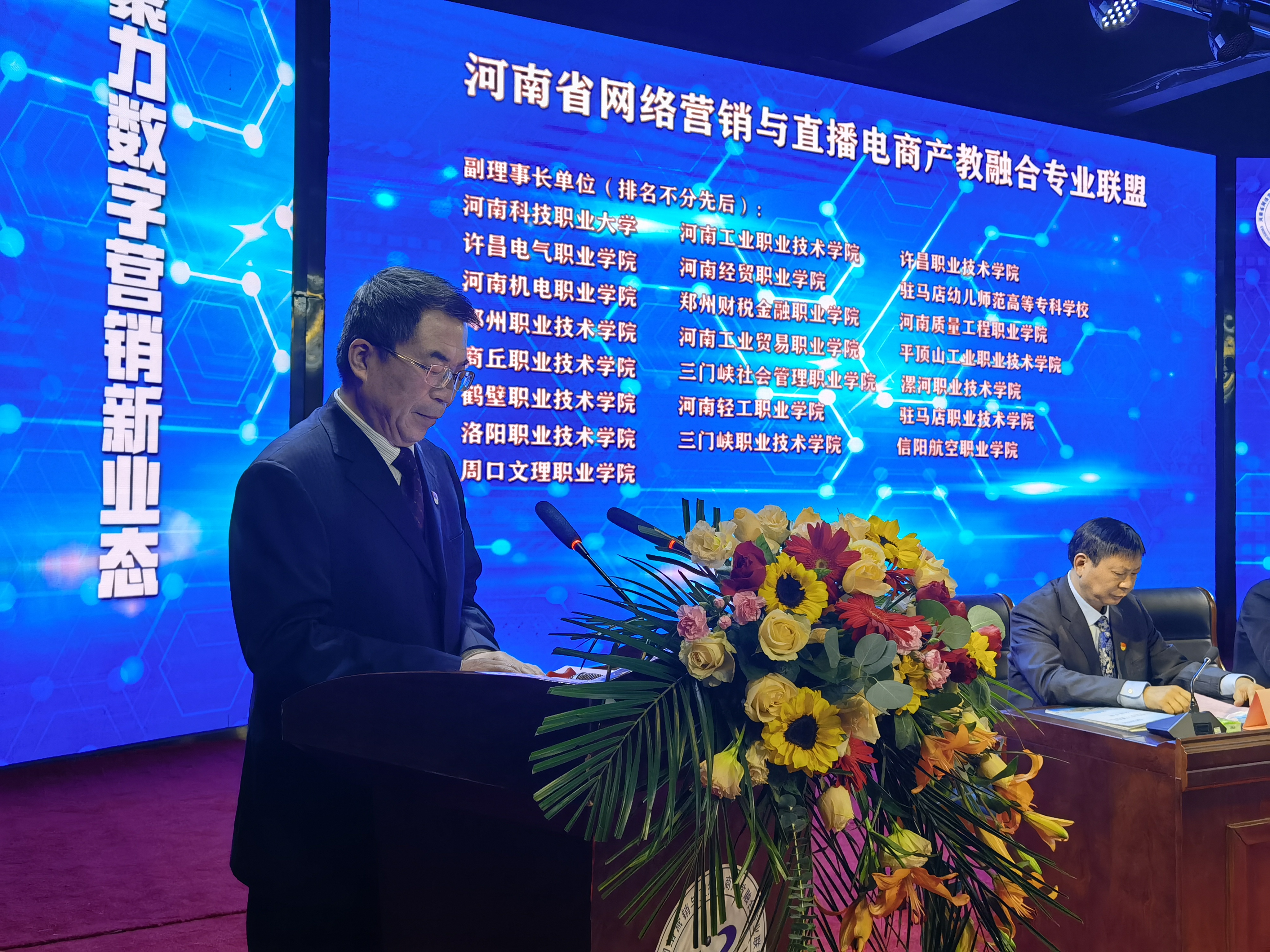 河南省商务厅电商处一级调研员郭永和代表河南省商务厅对联盟的成立表示热烈的祝贺并介绍,相信联盟的成立将开启我省网络营销与直播电商人才培养新征程,谱写产教融合发展新篇章,在带动市场消费、促进经济增长、助力乡村振兴等方面发挥更加积极作用,为“数字河南”建设做出新的更大贡献。