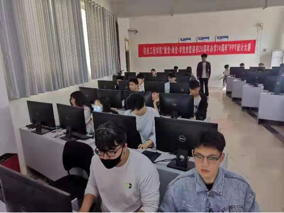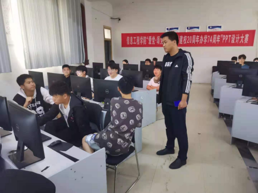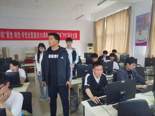 为庆祝中国共产党建党一百周年,5月19日下午,awc777万象城娱乐官网在学院D机房举办“爱党、颂党、学党史”暨建校20周年演示文稿设计大赛。学院学管办主任王文立亲临比赛现场进行指导。