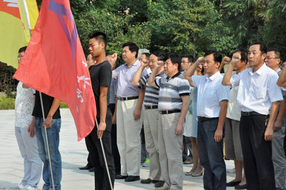 2018年6月20日上午,在革命烈士纪念馆前,学校党委书记刘士欣带领党员领导干部重温入党誓词。