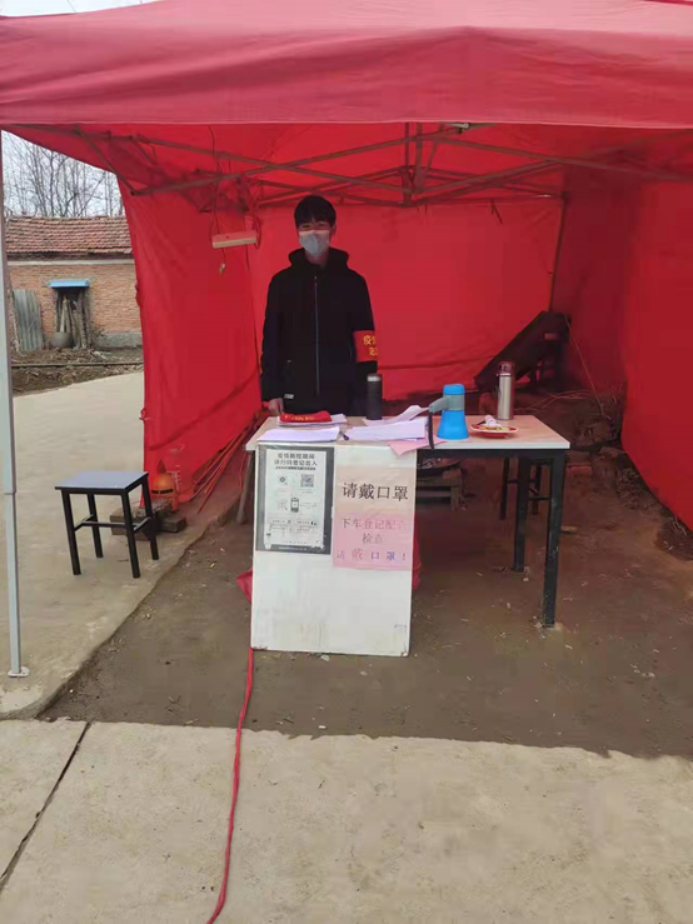 21软件技术1班 刘文阳,在驻马店市汝南县汝悦小区1号院参加卡点登记车辆、填写信息、测量体温和防疫宣传。