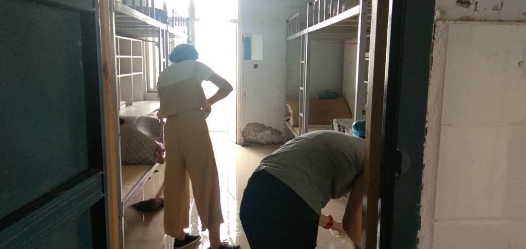 春和大地,大自然焕然一新。2020年注定是一个不平凡的年度,疫情的到来阻挡了学生上学的步伐,但是不能阻隔老师的关爱,在闷热的学生宿舍里,一位位老师,赤膊上阵,热火朝天,在学生宿舍打扫地面,整理桌凳,拖干地面,准备好干净、卫生的安全居住环境,迎接万象城官网学生顺利返校报到。