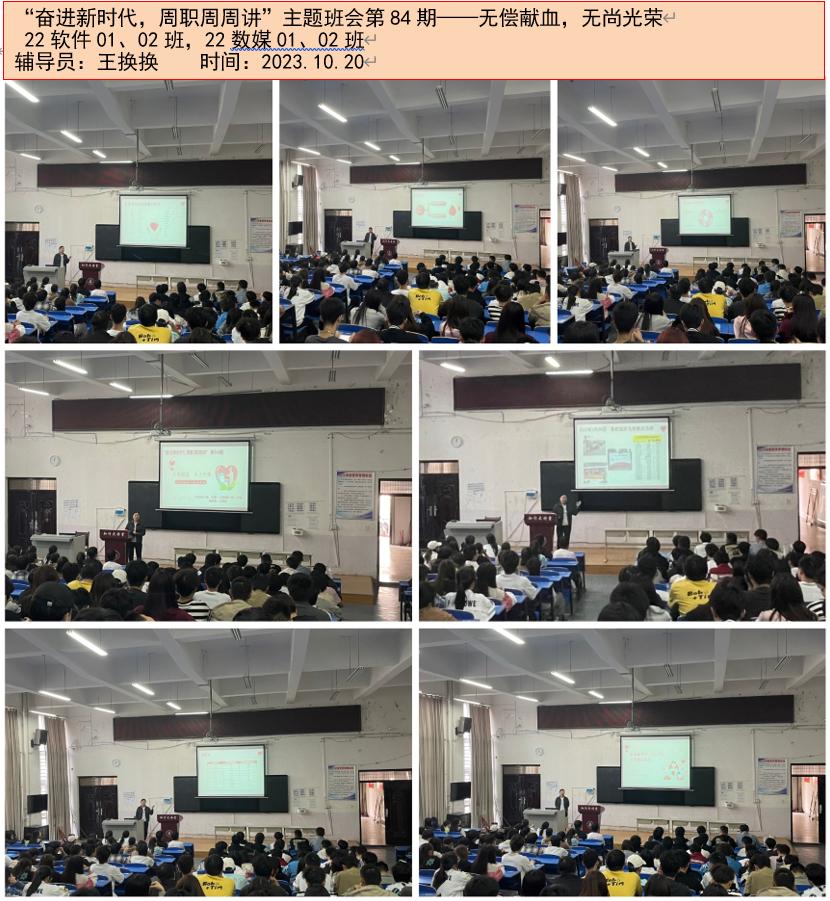 献血让生命延续,奉献让真情永存,无偿献血,血浓情更浓,热血是生命的标志,无偿献血是文明的进步。为弘扬无私奉献的精神,提高同学们对无偿献血的认识,以实际行动关爱生命,为社会贡献一份力量。10月19日晚自习期间,awc777万象城娱乐官网召开“奋进新时代周职周周讲”第八十四期主题班会——无偿献血,无上光荣。
