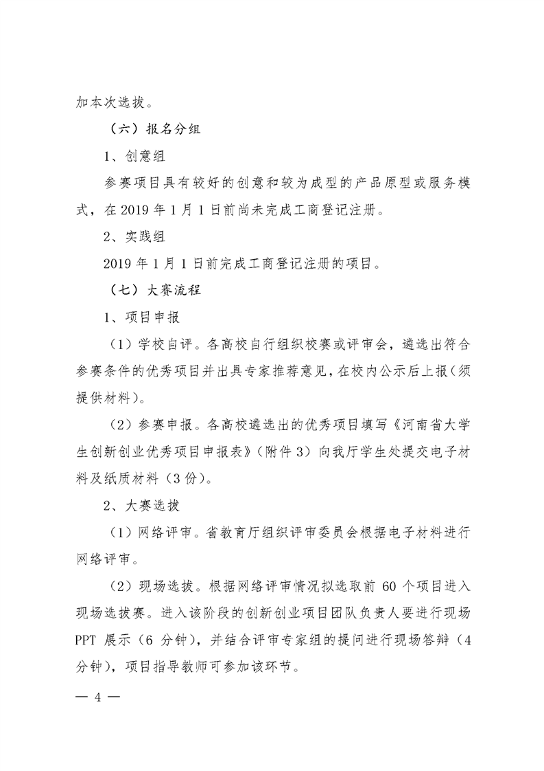 河 南 省 教 育 厅 关于组织开展2019年“新时代·新梦想” 全省大学生创新创业实践活动的通知