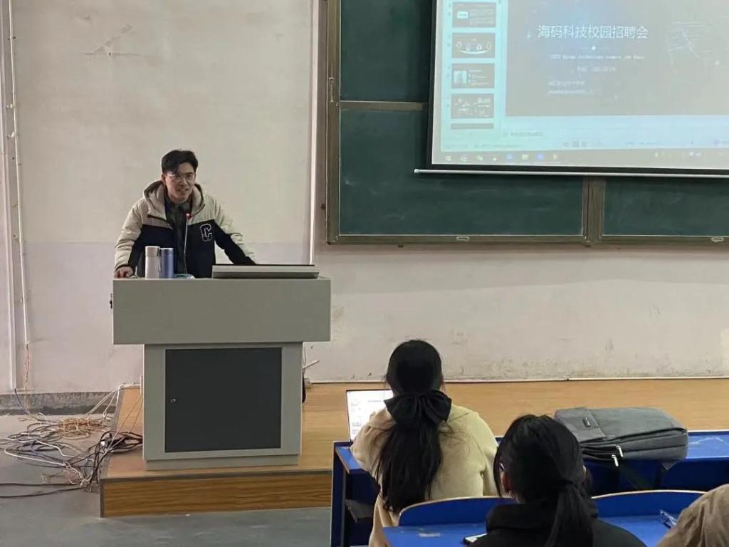 在招聘会的初始,先由学管副院长楚书来进行了致辞,阐述了目前严峻的就业形势,鼓励学生在结合自我认知和职业世界认知的情况下,抓住就业机会,调整就业心态,勇于拼搏,敢于奋斗,为未来的职业生涯做好规划,定好方向,立足当下,展望未来,准备迎接自己步入社会后的人生新阶段,成就美好人生。发言结束后参会的三家企业:河南海码科技有限责任公司、郑州匠云网络科技有限公司、河南华杉信息技术有限公司,面向参加此次校园招聘会的近200名学生,企业方按照顺序逐一进行了企业推介。各企业均宣讲了企业概况、发展前景及招聘岗位等相关信息,供学生了解企业,做出准确的选择。