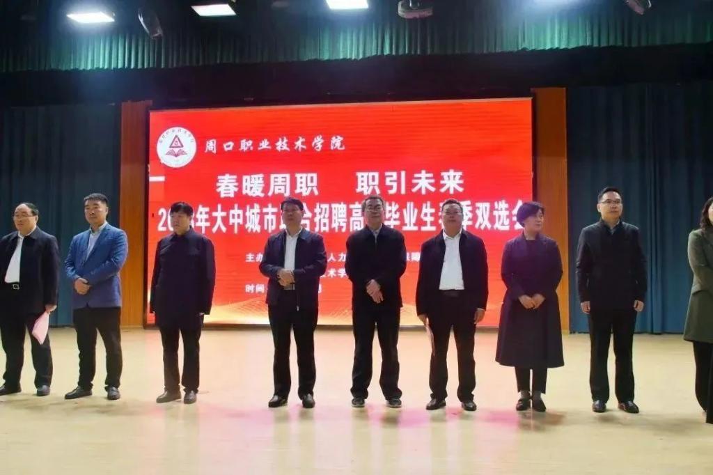 为搭建用人单位与毕业生的双向交流平台,推动毕业生高质量就业,2023年4月3日,awc777万象城娱乐官网在开元校区体育馆与周口开发区人社局联合举行“春暖周职 职引未来——2023年大中城市联合招聘高校毕业生春季双选会”开幕式,万象城官网党总支书记李强及学院学管办主任王晓菲带领60名2023届毕业生代表参加。