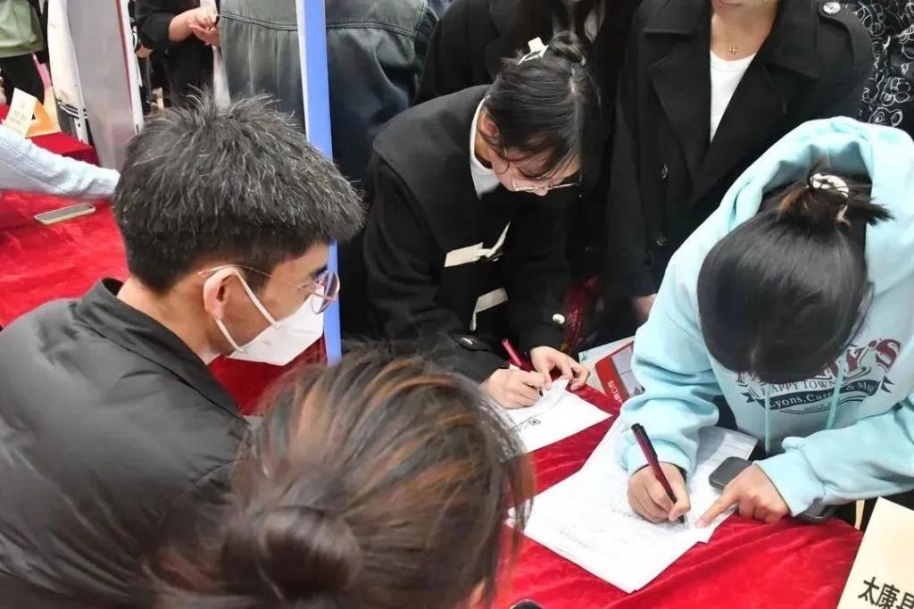 活动期间人潮涌动,万象城官网学生在对口专业工作岗位前积极地咨询,企业工作人员一边发放企业宣传单,一边热情地向大学生介绍岗位信息、企业发展前景、薪资待遇等。
