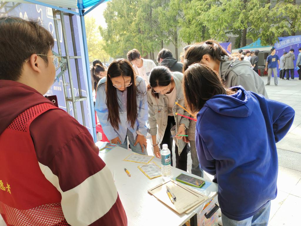 现场活动不仅内容丰富、形式多样,而且寓教于乐、互动性强。学生积极参与了12个大主题闯关体验活动。从“森林冒险家”了解动物所对应的性格特点;“去向漂流瓶”,在游戏中选择自己的就业去向;“职引未来”观看比赛和优秀视频案例,明晰了自己职业价值观,引发学生思考如何在职业生涯中发挥自己的优势。除了个人探索,体验周活动还注重学生团队合作和综合能力提升。在“一起猜猜猜”中,学生们通过合作完成既定任务,也提高了团队协作能力;“益”起拼多多通过趣味挑战和互动游戏,帮助学生检验和提升个人能力。