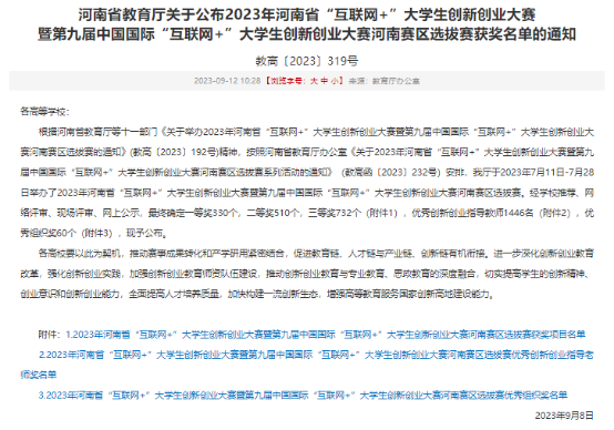 2023 年河南省“互联网+”大学生创新创业大赛暨第九届中国国际 “互联网+”