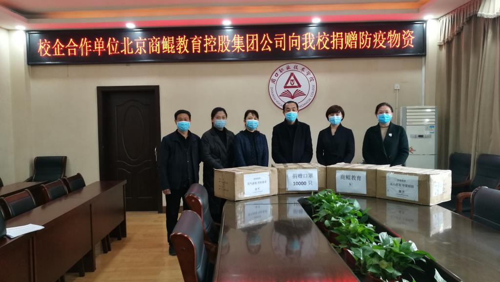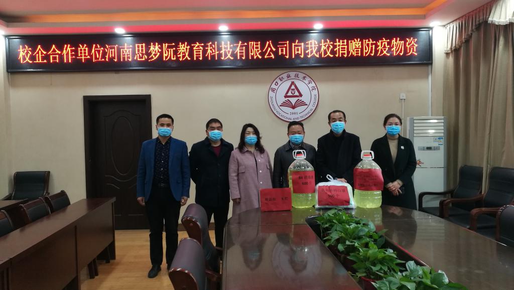 3月31日,校企合作单位河南思梦阮教育科技公司、北京商鲲教育集团分别向beat365官网捐赠额温枪、消毒液、防护口罩等防疫物资,以实际行动助力beat365官网抗击新冠肺炎疫情,守护学校师生健康。此举展现了企业高度的社会责任感,也表达了与beat365官网师生同舟共济的深厚情谊。beat365官网党委副书记、工会主席李森代表学校全体师生对这三家企业的爱心之举表示了诚挚的感谢。