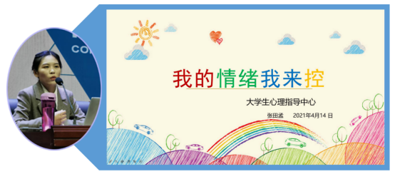 张老师首先分析了情绪会带来的影响,使大家明白无论是积极情绪、还是消极情绪,其产生都不是无缘无故的。接着,她又提出了一些情绪管理的方法——接纳情绪、适当地表达情绪、合理地调控情绪。张老师语言活泼,通过各种案例、故事的引用,让晦涩难懂的理论变得浅显易懂,不仅为学生普及了心理健康教育知识,还使学生掌握了情绪管理的方法。
