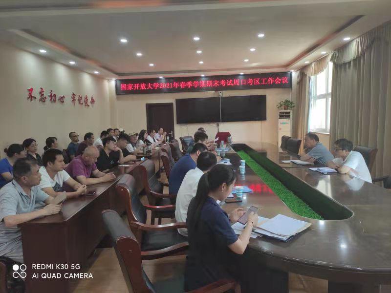 在新冠疫情防控常态化形势下,为全力做好开放教育考试组织工作,确保期末考试顺利进行,7月9日上午9时,周口广播电视大学在开元校区第三会议室召开了2021年春季学期期末考试工作会议,考务、监考和下县巡考等人员参加了会议,会议由总支书记徐恒玉主持。
