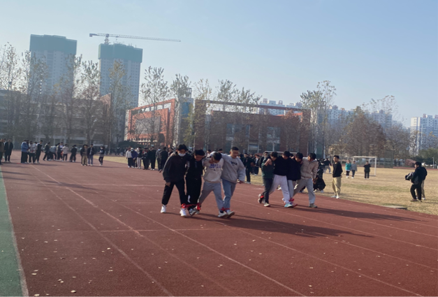 本次比赛主要是两人三足、四人五足项目等,共有18个班级参加,百余名选手参加,各班内部进行两人三足初选,随后以班级为单位进行四人五足比拼。