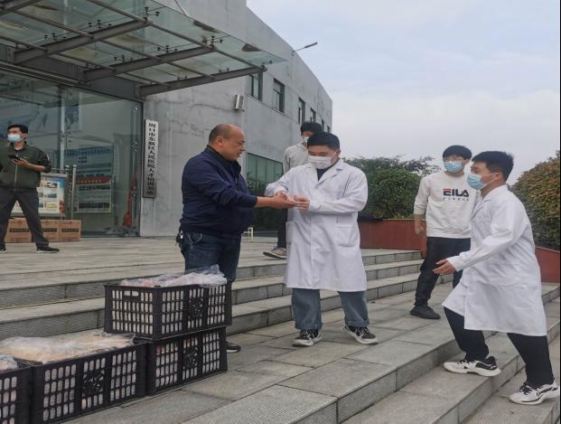 面对日益严峻的疫情防控形势,为提升全校师生幸福感和归属感,感谢广大师生对学校抗"疫"工作做出的贡献,5月10日下午,后勤管理处对文昌校区开展关怀慰问活动,为师生送来口罩、水果等抗疫物资及慰问物品,让在岗教职工安心,让校外亲人放心。医学院党总支书记王隼、护理学院党总支书记于爱霞,后勤管理处副处长李永辉及相关人员参加了此次活动。