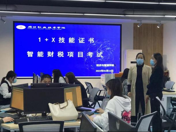 为进一步推进《国家职业教育改革实施方案》中“1+X”证书制度落地实施,5月15日上午,经济与管理学院在图书馆三楼业财一体化实训室举行第一批“1+X”技能证书智能财税项目考试,教务处处长李嘉深入现场进行观摩指导,并对此次考试实效给予肯定。