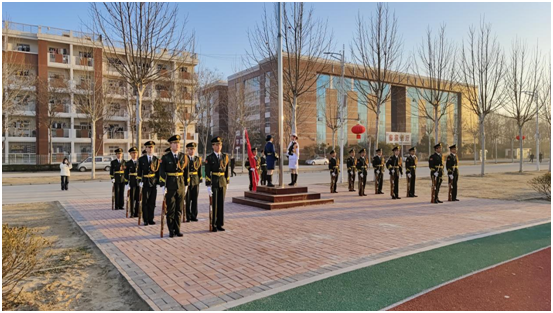 升旗仪式时,全体师生肃立,雄壮的国歌奏响,鲜艳的五星红旗在师生的注目下冉冉升起,神圣、庄严的氛围感染着在场的每一位师生。