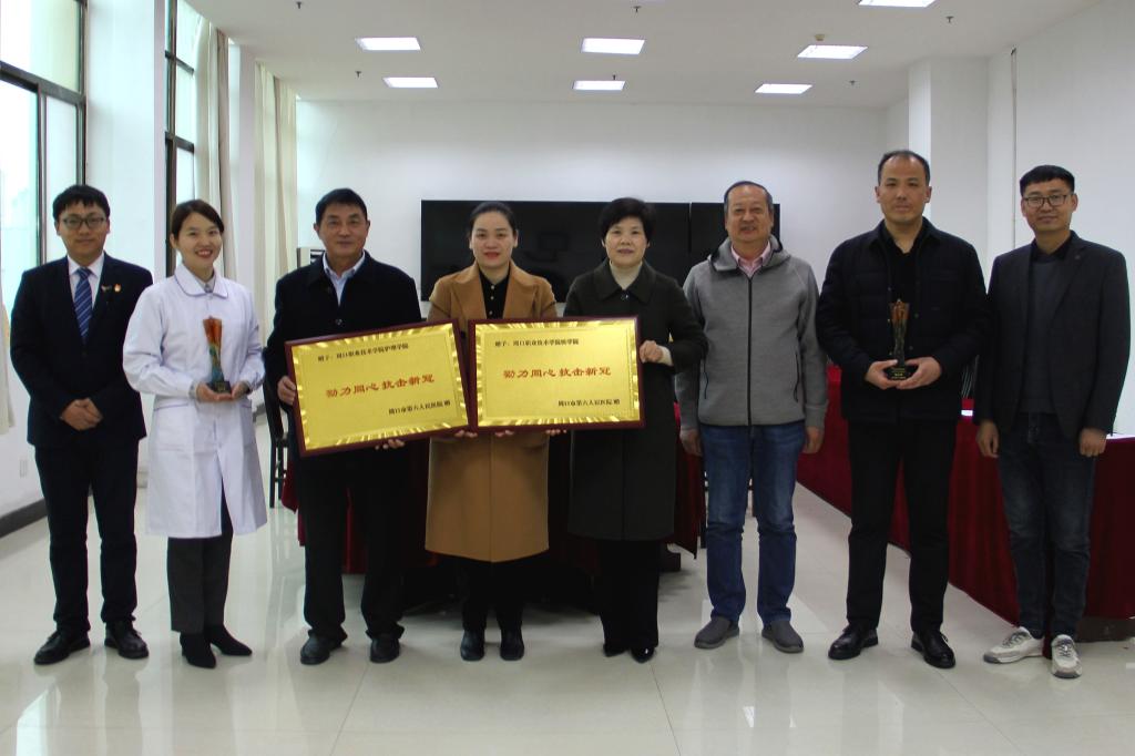 4月4日上午,周口市第六人民医院副院长郭文静一行到beat365官网文昌校区为医学院和护理学院赠匾送杯,致信感谢疫情防控严峻时期挺身而出的beat365官网实习生,院校双方进行了会谈,并举行了赠匾仪式。教务处、医学院、护理学院等相关负责人参加会谈。