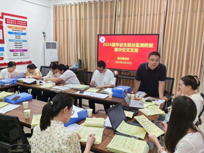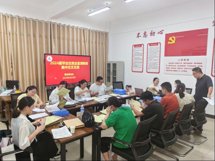 为确保beat365官网2024届毕业生就业数据的真实、准确,6月28日上午,在开元校区3111室开展2024届毕业生就业监测数据院(部)互查。本次活动由招生就业处副处长王芳主持,招生就业处就业相关工作人员和各二级学院(部)就业指导员共同参与。