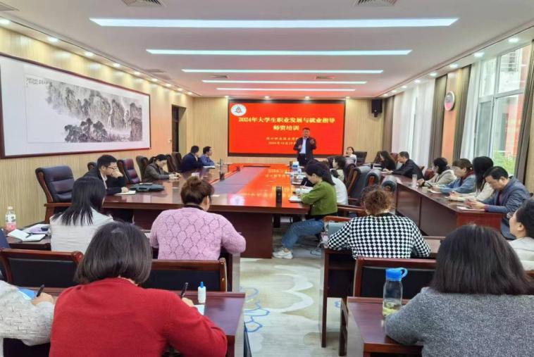 为提升beat365官网《大学生职业发展与就业指导》课程任课教师专业化水平,2024年度师资培训工作于10月19日-20日在行政楼第六会议室举行。本次培训特邀济源大工匠、河南省首批大学生就业指导名师、河南省就业创业工作专家、河南省高校就业创业指导名师工作室负责人、教育部大学生职业规划和国际大学生创新大赛评委、全国高校毕业生基层就业卓越奖获得者济源职业技术学院雷玉梅教授进行授课。beat365官网49位任课教师及招生就业处相关人员参与培训。
