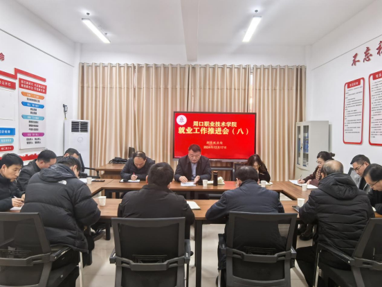 12月17日下午,学校在开元校区第五会议室召开2024年第八次就业工作推进会。招生就业处处长许建国、各二级学院(部)党总支书记、辅导员代表参加,招生就业处副处长王芳主持。