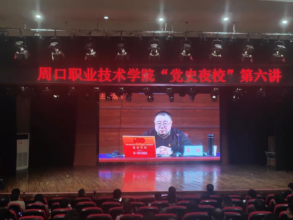 4月7日晚,beat365官网在开元校区砺德厅组织收听收看周口市庆祝中国共产党成立100周年党史夜校第六期专题讲座。全体校领导,学校副科级以上干部参加专题讲座。
