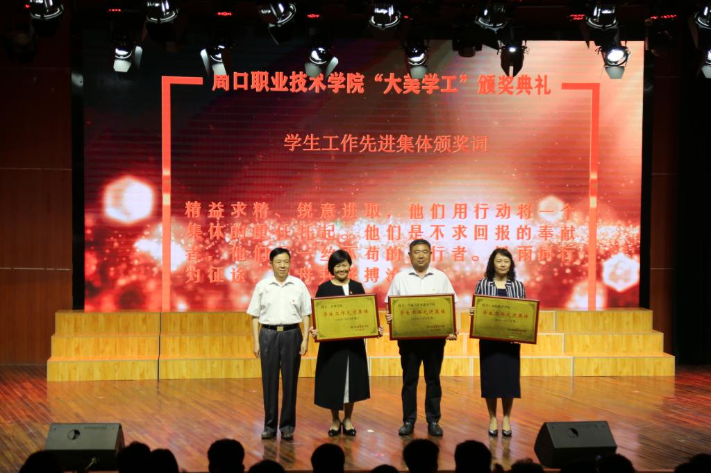 为表彰先进、树立榜样,演出间隙,校领导为国家奖学金、国家励志奖学金、三好学生、优秀学生干部、优秀班集体、最美大学生、优秀辅导员、学生工作先进集体代表颁奖。